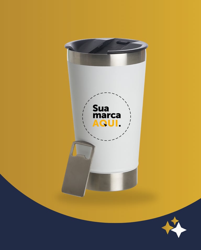 Copos, canecas, squeeze que deixam sua marca sempre presente.